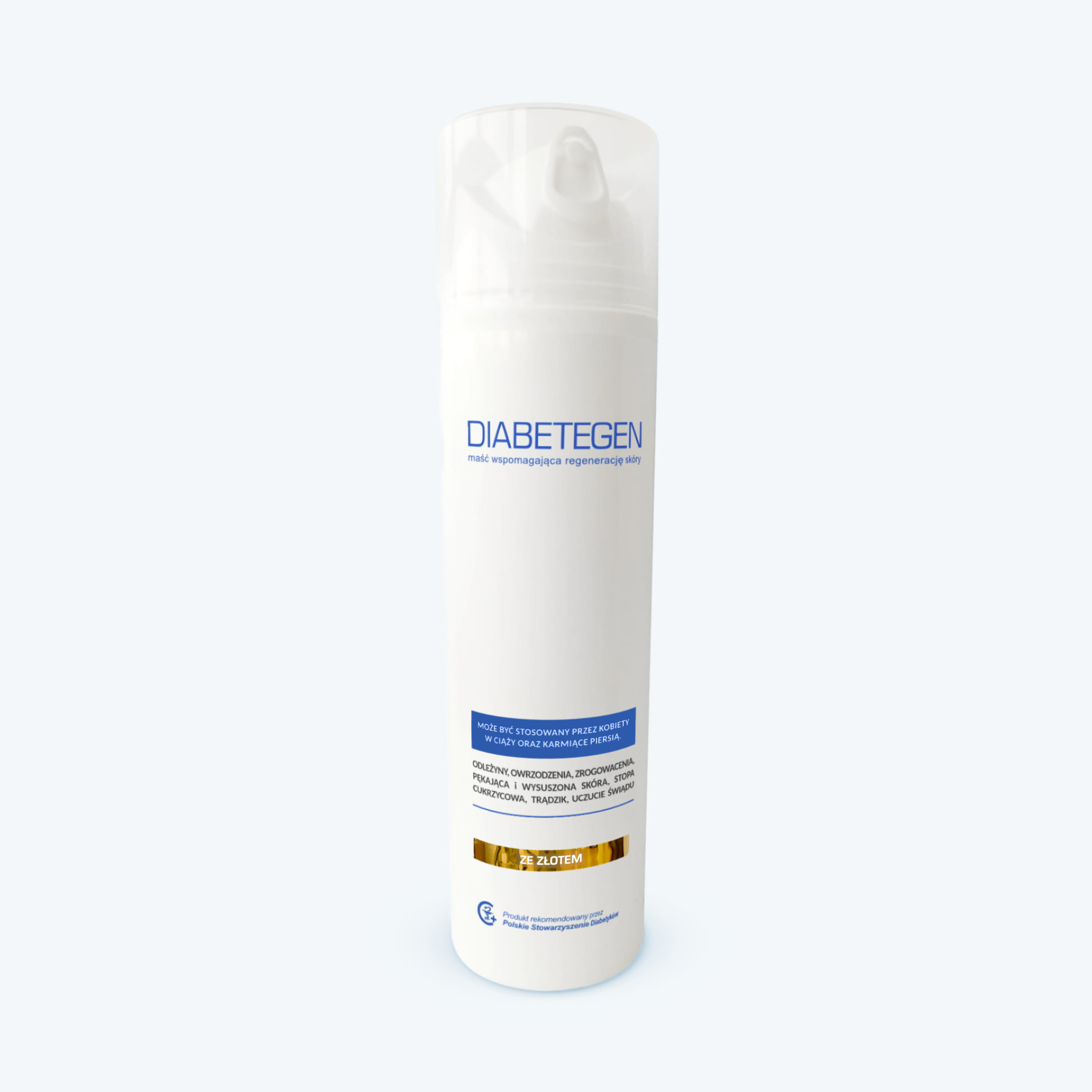 DIABETEGEN - AIDS IN TISSUE REGENERATION DIABETEGEN – a cream for tissue regeneration – a new generation of dermo-cosmetics supporting tissue regeneration. Thanks to a high content of lactoferrin, lactoperoxidase and colloidal silver, it is excellent in the purification of the background, adjusts the bacteriostatic environment and has a strong germicidal impact. A high content of growth factors stimulates the development of new tissue. Additional components such as allantoin, Panthenol and vitamin E support the healing process and alleviate inflammatory lesions. The cream is recommended by the Polish Association of Diabetics and the Polish Podology Association. The winner of the 1st place at the Diabetica Expo 2011 fair in the category of “Cosmetics”. Properties of the cream: helps in the healing of wounds and skin regeneration, restores the correct pH value of the skin (cream pH 5.78), has the bacteriostatic and germicidal impact, alleviates irritation, reduces skin itching, checks the epidermal keratosis.